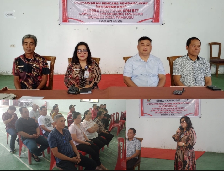 Minahasa, ManadoSiana – Pemerintah Desa Tampusu di bawah kepemimpinan Hukum Tua Arnold Ponamon menggelar Musyawarah Rencana Pembangunan Desa (Musrenbang) sekaligus Musyawarah Desa (Musdes) Penetapan Keluarga Penerima Manfaat (KPM) Bantuan Langsung Tunai (BLT) serta laporan pertanggungjawaban BUMDes Desa Tampusu Tahun Anggaran 2026.