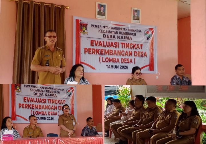 Minahasa, ManadoSiana — Pemerintah Desa Kaima, Kecamatan Remboken, Kabupaten Minahasa menggelar kegiatan Evaluasi Tingkat Perkembangan Desa Tahun 2026 yang dirangkaikan dengan penilaian Lomba Desa. Kegiatan tersebut dipimpin langsung oleh Hukum Tua Desa Kaima, Arthur Supit, bersama Camat Remboken Egthmi Moniung, SE, pada Senin (16/3/2026).