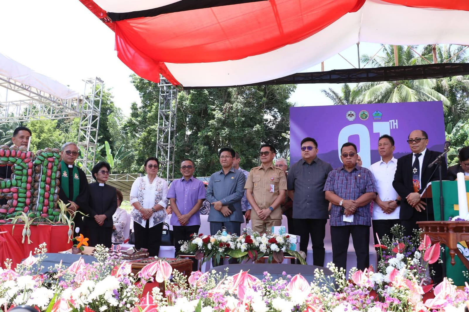 Bupati Minahasa Robby Dondokambey dalam kesempatan tersebut menyampaikan ucapan syukur dan apresiasinya atas perjalanan panjang pelayanan GMIM yang telah mencapai usia 91 tahun.