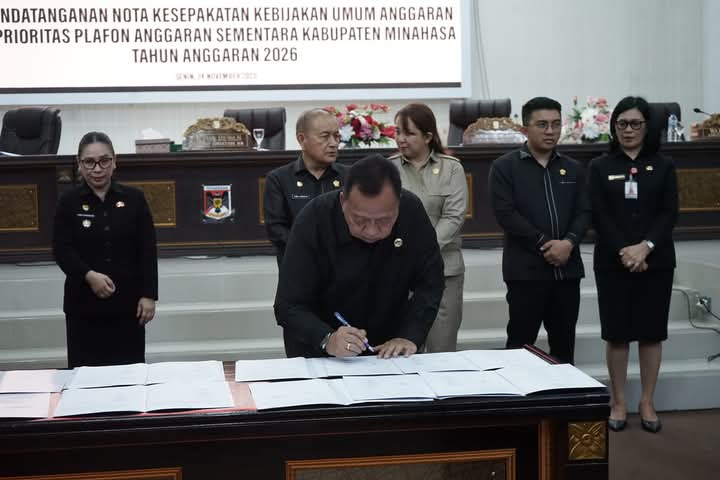 Minahasa, ManadoSiana- emerintah Kabupaten Minahasa kembali menegaskan komitmen kuatnya dalam mengawal arah pembangunan daerah. Hal ini tampak jelas ketika Bupati Minahasa, Robby Dondokambey, S.Si, MAP, bersama Wakil Bupati, Vanda Sarundajang, SS, hadir langsung dalam Rapat Paripurna Penandatanganan Nota Kesepakatan KUA-PPAS Tahun Anggaran 2026 di Ruang Sidang DPRD Kabupaten Minahasa.