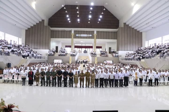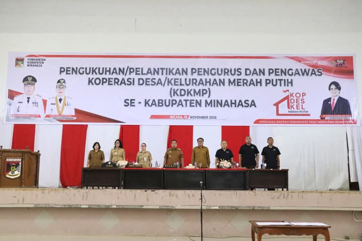 Minahasa, ManadoSiana—Bupati Minahasa, Robby Dondokambey, S.Si, MAP, secara resmi melantik Pengurus dan Pengawas Koperasi Desa/Kelurahan Merah Putih se-Kabupaten Minahasa dalam upacara yang digelar di Gedung Wale Ne Tou Minahasa, Selasa (18/11/25).