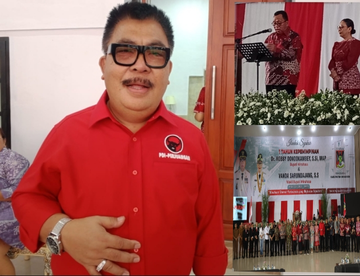Dalam kesempatan tersebut, Anggota DPRD Kabupaten Minahasa dari Fraksi Partai PDIP menyampaikan ucapan selamat dan apresiasi atas satu tahun kepemimpinan RD–Vasung.