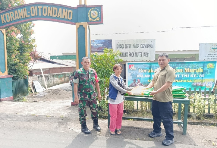 Kodim 1302/Minahasa Gelar Pasar Murah Beras Sambut HUT TNI ke-80