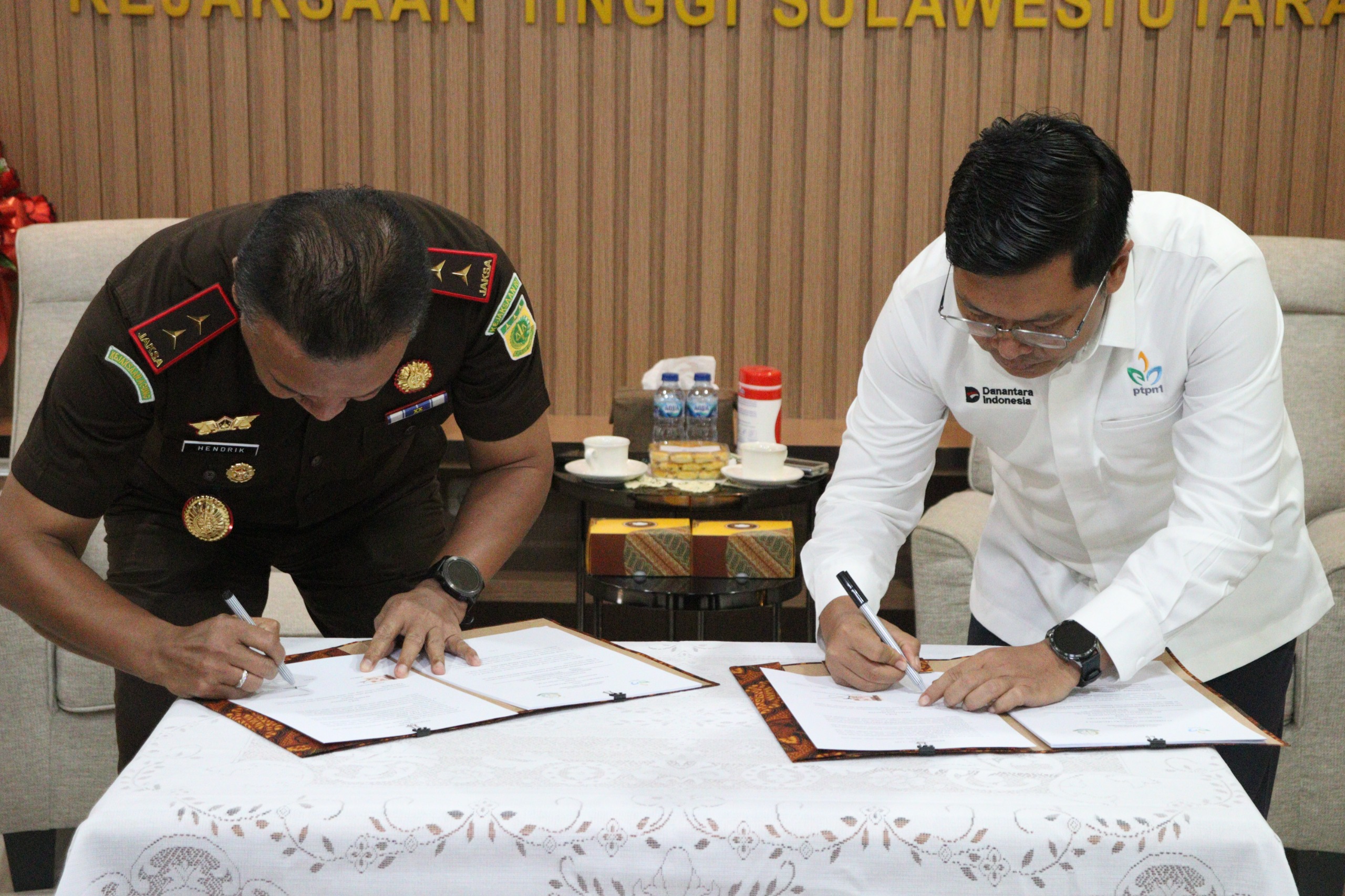 Prosesi penandatanganan kerja sama tersebut dilakukan langsung oleh Kepala Kejaksaan Tinggi (Kajati) Sulut, Jacob Hendrik Pattipeilohy, dan Region Head PTPN I Regional 8, Misran, di Ruang Kepala Kejaksaan Tinggi Sulut, Manado, Senin (26/1).