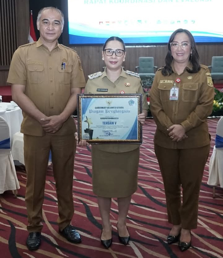 Pada kesempatan itu, Kabupaten Minahasa menerima Piagam Penghargaan Terbaik V Penurunan Stunting Tahun 2025, kategori Kinerja Pelaksanaan 8 Aksi Konvergensi Penurunan Stunting Tahun 2024 di Provinsi Sulawesi Utara.
