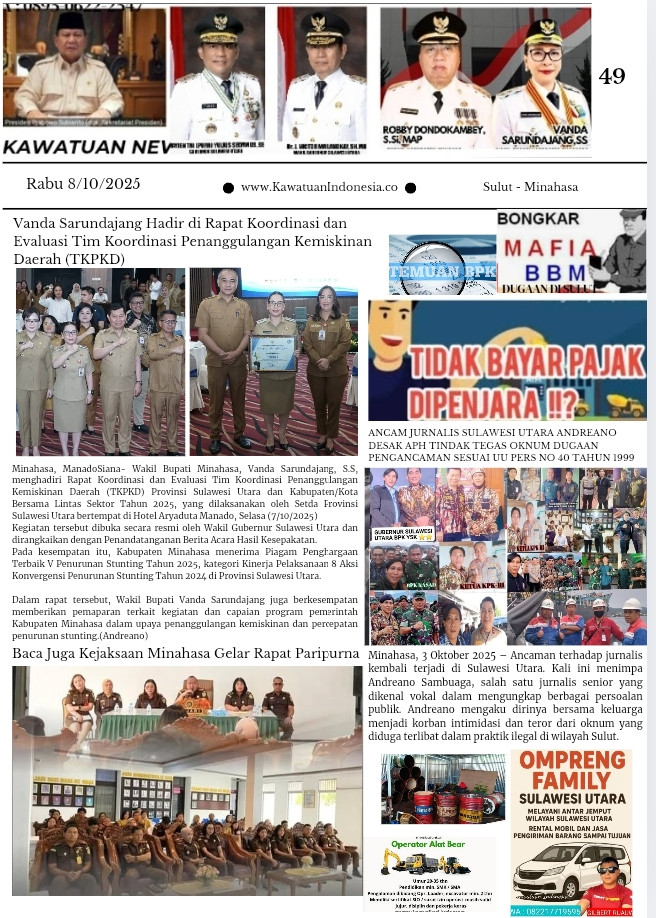Minahasa, ManadoSiana- Wakil Bupati Minahasa, Vanda Sarundajang, S.S, menghadiri Rapat Koordinasi dan Evaluasi Tim Koordinasi Penanggulangan Kemiskinan Daerah (TKPKD) Provinsi Sulawesi Utara dan Kabupaten/Kota Bersama Lintas Sektor Tahun 2025, yang dilaksanakan oleh Setda Provinsi Sulawesi Utara bertempat di Hotel Aryaduta Manado, Selasa (7/10/2025)