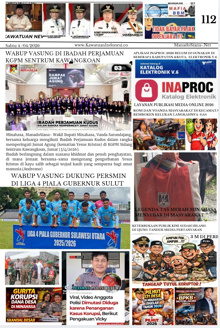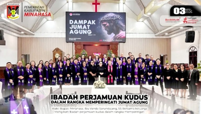 Minahasa, ManadoSiana- Wakil Bupati Minahasa, Vanda Sarundajang, bersama keluarga mengikuti Ibadah Perjamuan Kudus dalam rangka memperingati Jumat Agung (kematian Yesus Kristus) di KGPM Sidang Sentrum Kawangkoan, Jumat (3/4/2026).