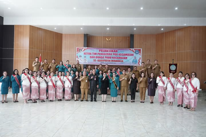 Minahasa, ManadoSiana- Suasana penuh antusias dan kekhidmatan mewarnai Pelantikan Ketua TP-PKK Kecamatan dan Bunda PAUD Kecamatan se-Kabupaten Minahasa yang digelar di BPU Tondano, Senin (24/11/2025).